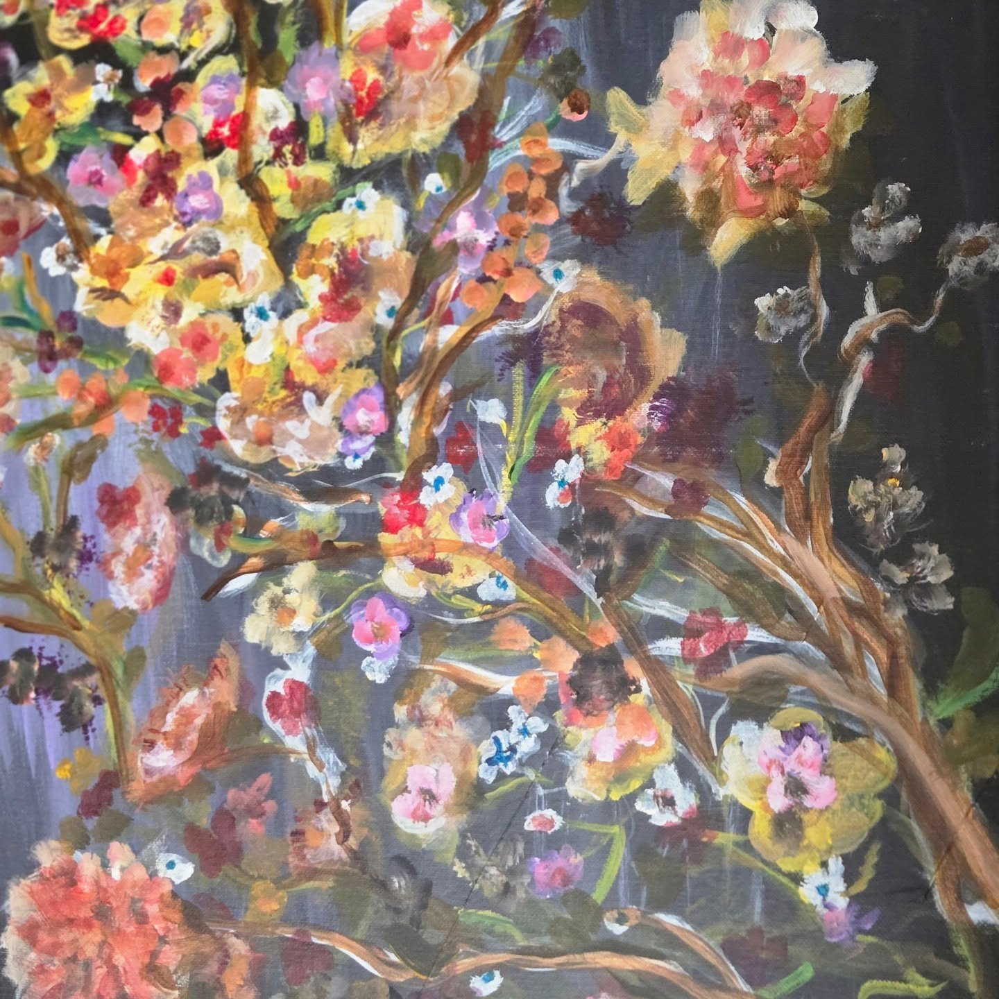 Lots of her Paintings were created over time with imagination, Color, Landscape, and the freedom to explore the explosive mythical fantasy images of time and nature using Acrylic on Canvas and then the outcome of the finished Art that captures the mind and is refreshing to the eye of the viewer.