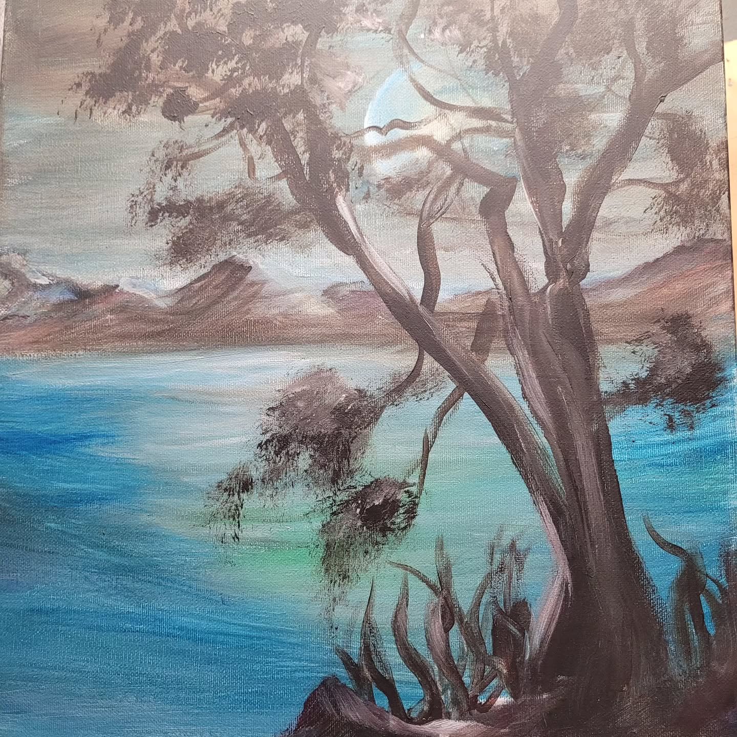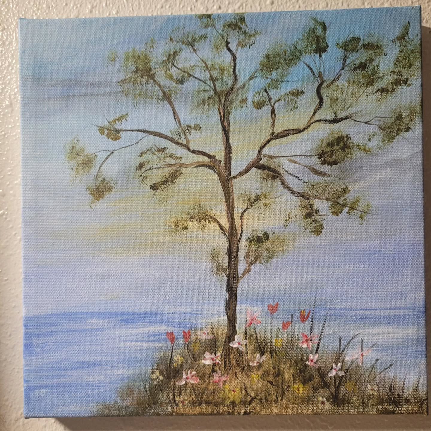 Lots of her Acrylic Paintings on Canvas took years to complete only because there were no reference photos to go by, only imagination. She creates a far away scene to the viewer who may imagine that they can quiet their mind right there, a space of their own.